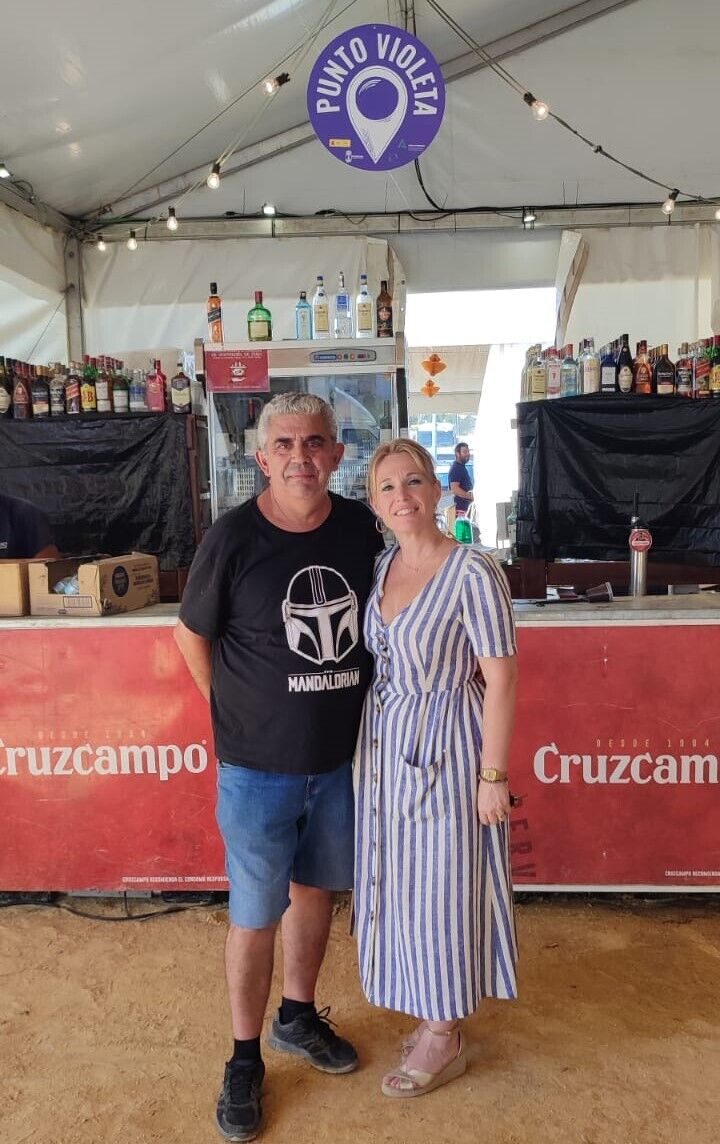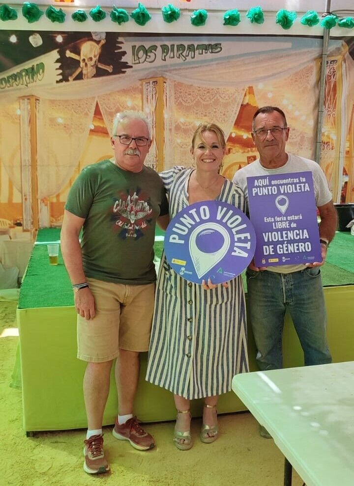 La delegada de Igualdad del Ayuntamiento de Gelves, Mariló González, hizo entrega ayer en el real de la Feria a las personas responsables de las distintas casetas colaboradoras de la iniciativa denominada PUNTOS VIOLETA, con la que se pretende hacer frente a las agresiones sexuales en este tipo de eventos. Esta campaña puesta en marcha por el IAM el pasado mes de junio, cuenta con el apoyo de los sectores de la hostelería y ocio nocturno de Andalucía para la prevención de la violencia sexual y estará presente con la imagen del teléfono 900 200 999 de manera visible. A través de este teléfono se activa el servicio de atención psicológica en crisis 24 horas para víctimas de agresiones sexuales, ofreciendo un recurso que es gratuito, confidencial y está operativo las 24 horas, los 365 días al año.
