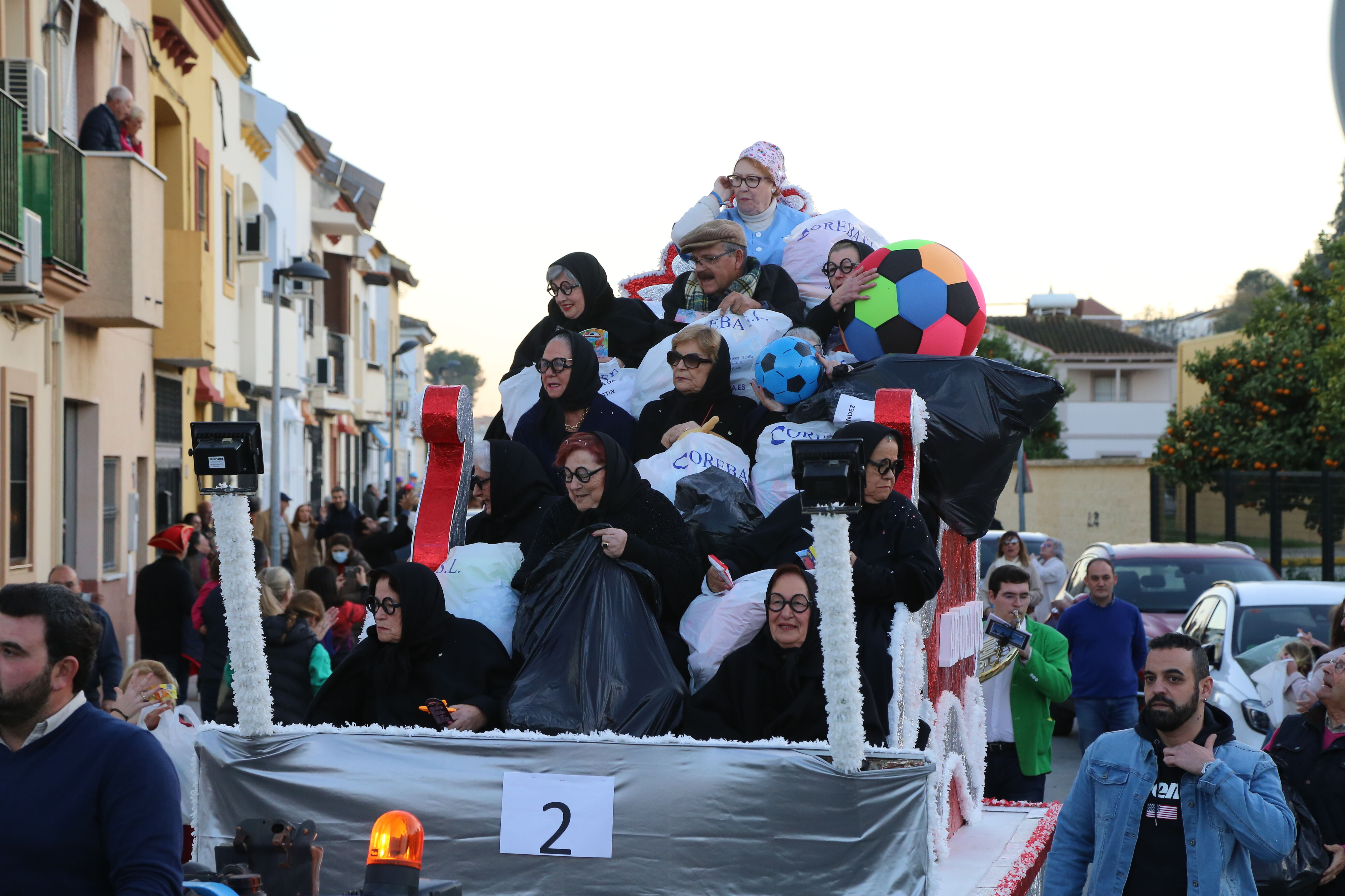 El cortejo estuvo formado por: la Banda de Música “Santa Cecilia” de Lebrija, la Estrella de la Ilusión (con representantes de las reinas y reyes de las Fiestas Patronales 2022), Jurassic Park (fantasía - con música ambiente), Rey Melchor, Tiana y el Sapo (fantasía), la Patrulla Canina (fantasía), Rey Gaspar, Los Abuelos (Asociación de Pensionistas de Gelves), el Ateneo de Gelves, Rey Baltasar y, la carroza con la animación Dj.