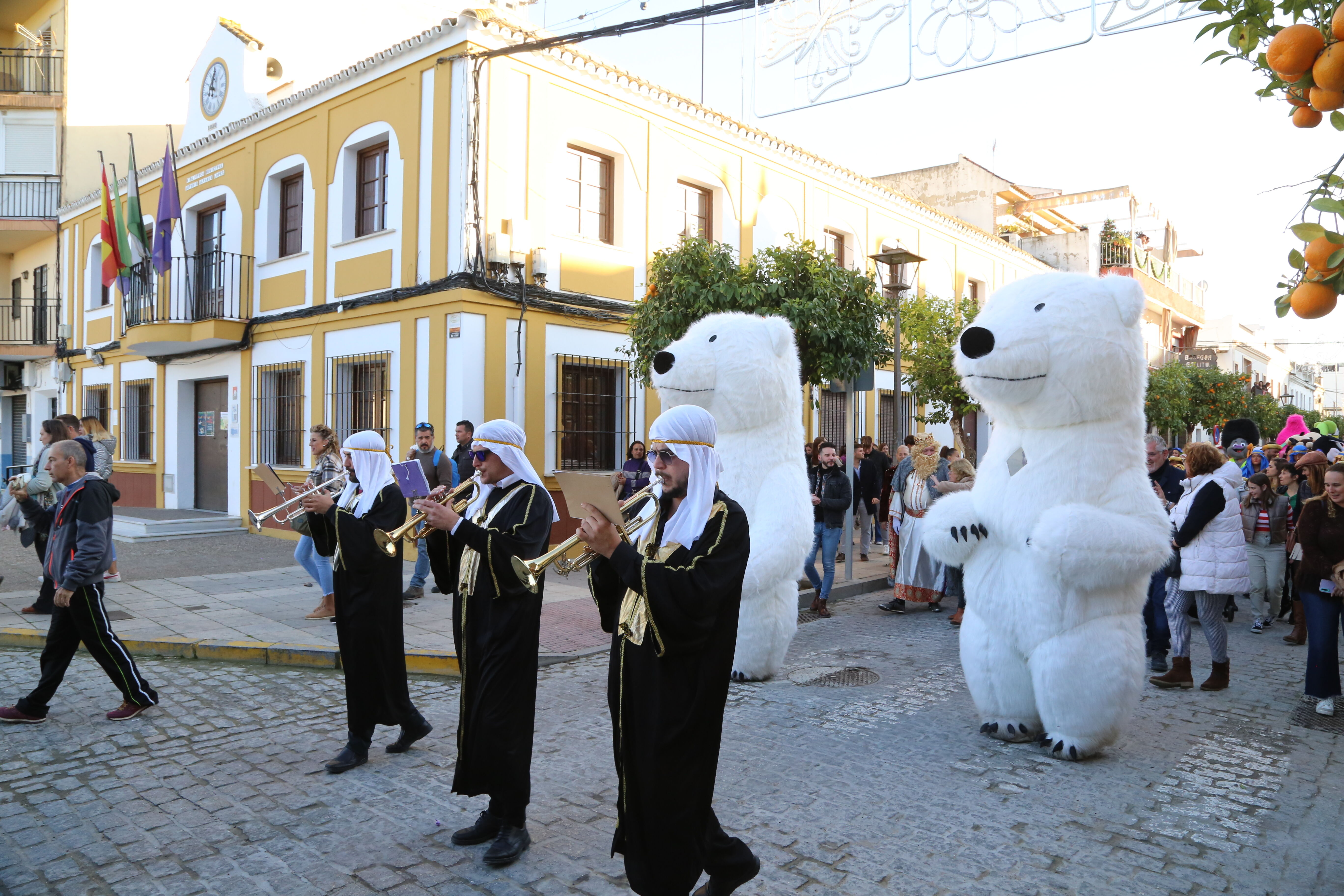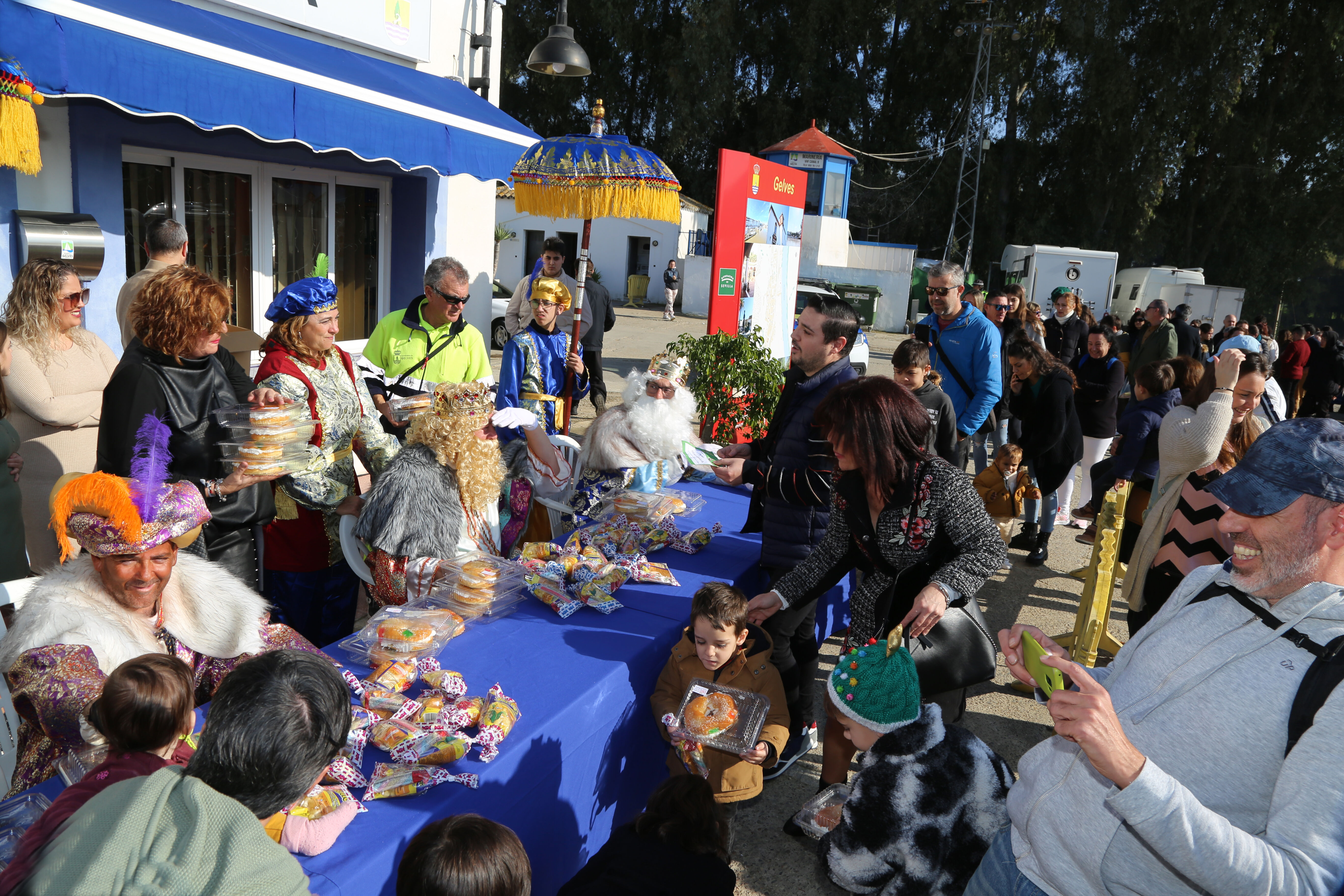 La Cabalgata de Reyes, organizada por la delegación de Fiestas y Eventos del Ayuntamiento de Gelves ha gozado en esta última edición de una excelente acogida por parte del público que acompañó al cortejo en gran número y con ilusión durante todo el recorrido por las calles del municipio. Así ha sido la respuesta de los vecinos/as de Gelves en general con todas las actividades organizadas por el Consistorio este año, especialmente con las novedades, entre ellas, la Jornada de Puertas Abiertas del Mercado Municipal con Muestra de Dulces Navideños; las actividades infantiles en la Biblioteca Municipal; el Cartero Real (con su gran nevada final); y la “Gran Papanoelada” del día 24 de diciembre.