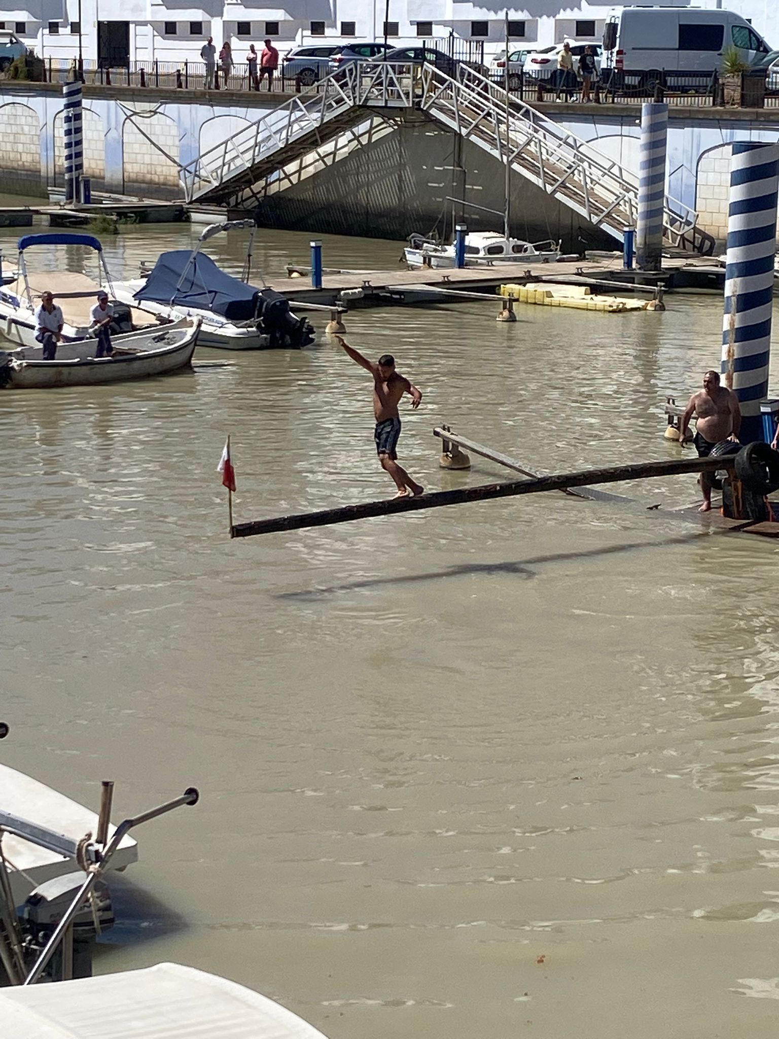 Fiel a la tradición Puerto Gelves ha acogido un año más la cucaña