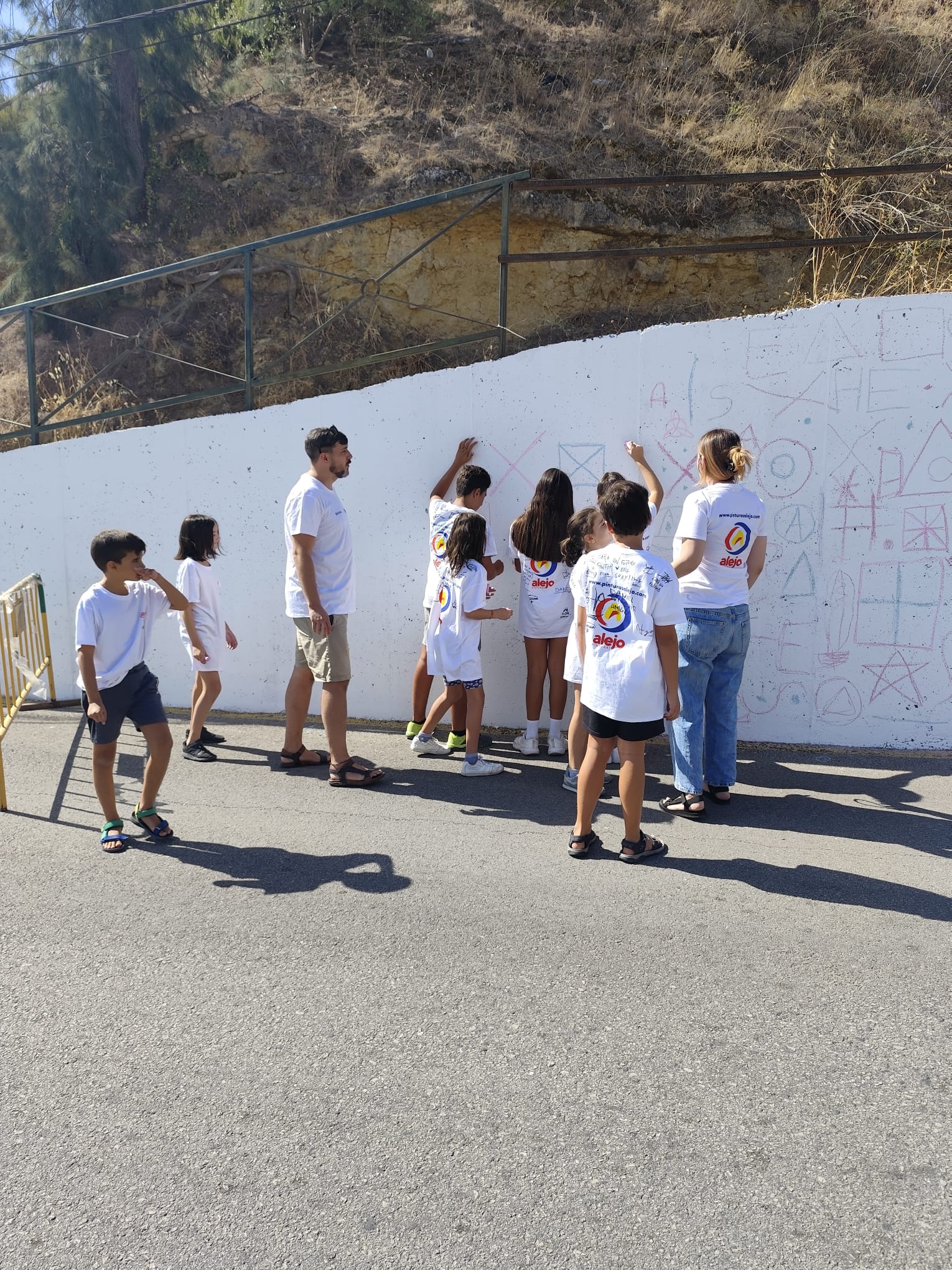 En esta fase final han hecho realidad su boceto sobre uno de los muros que conecta el municipio con la zona alta de Gelves ( Simon Verde) a la altura entre la Parroquia y el Cementerio Municipal, con la idea principal de llenar de color, simbología y embellecer esta zona.