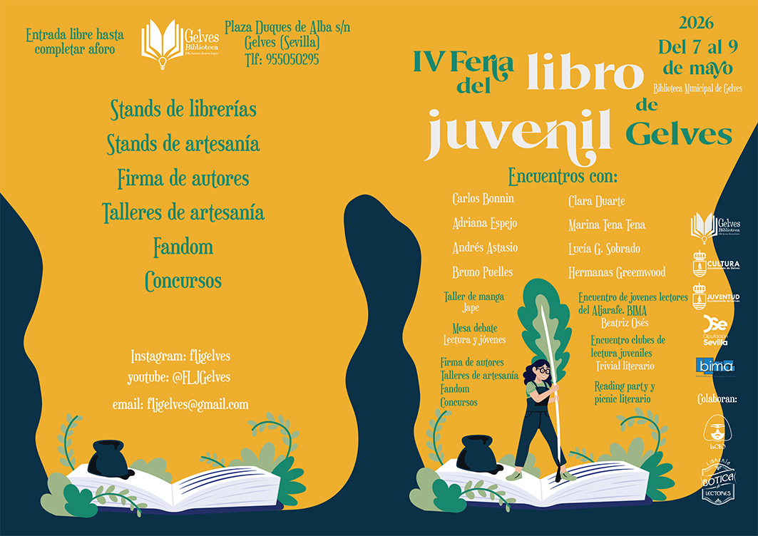 El Ayuntamiento de Gelves, a través de su Delegación de Cultura, ya tiene todo preparado para la celebración de la IV Feria del Libro Juvenil, que tendrá lugar del 7 al 9 de mayo de 2026 en la Biblioteca Municipal y su entorno. Una cita ya consolidada que continúa apostando por un formato único en el panorama nacional, centrado exclusivamente en el público juvenil.