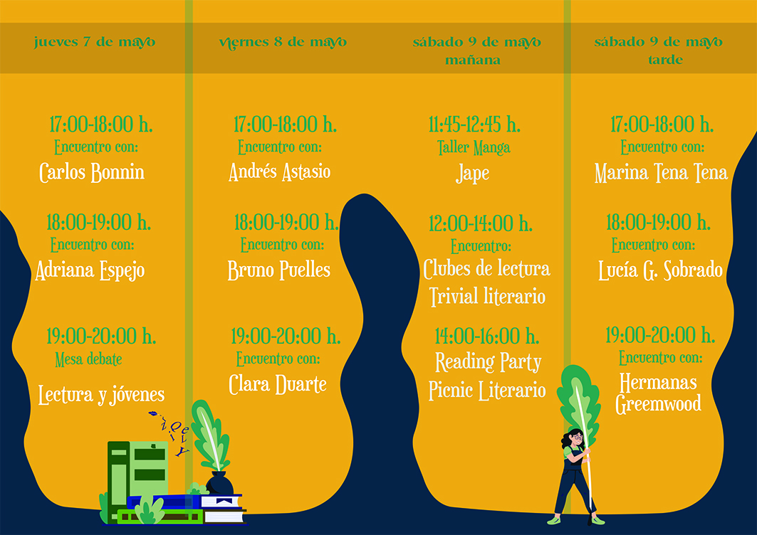 Tras el éxito de ediciones anteriores, esta feria vuelve con una programación variada que combina literatura, ocio y participación, adaptada a los gustos de las personas jóvenes lectoras. El evento contará con encuentros con autoras y autores como Carlos Bonnin, Adriana Espejo, Andrés Astasio, Bruno Puelles, Clara Duarte, Marina Tena Tena, Lucía G. Sobrado y Hermanas Greenwood, entre otras personas invitadas, con quienes el público podrá conocer de cerca sus trayectorias y obras.