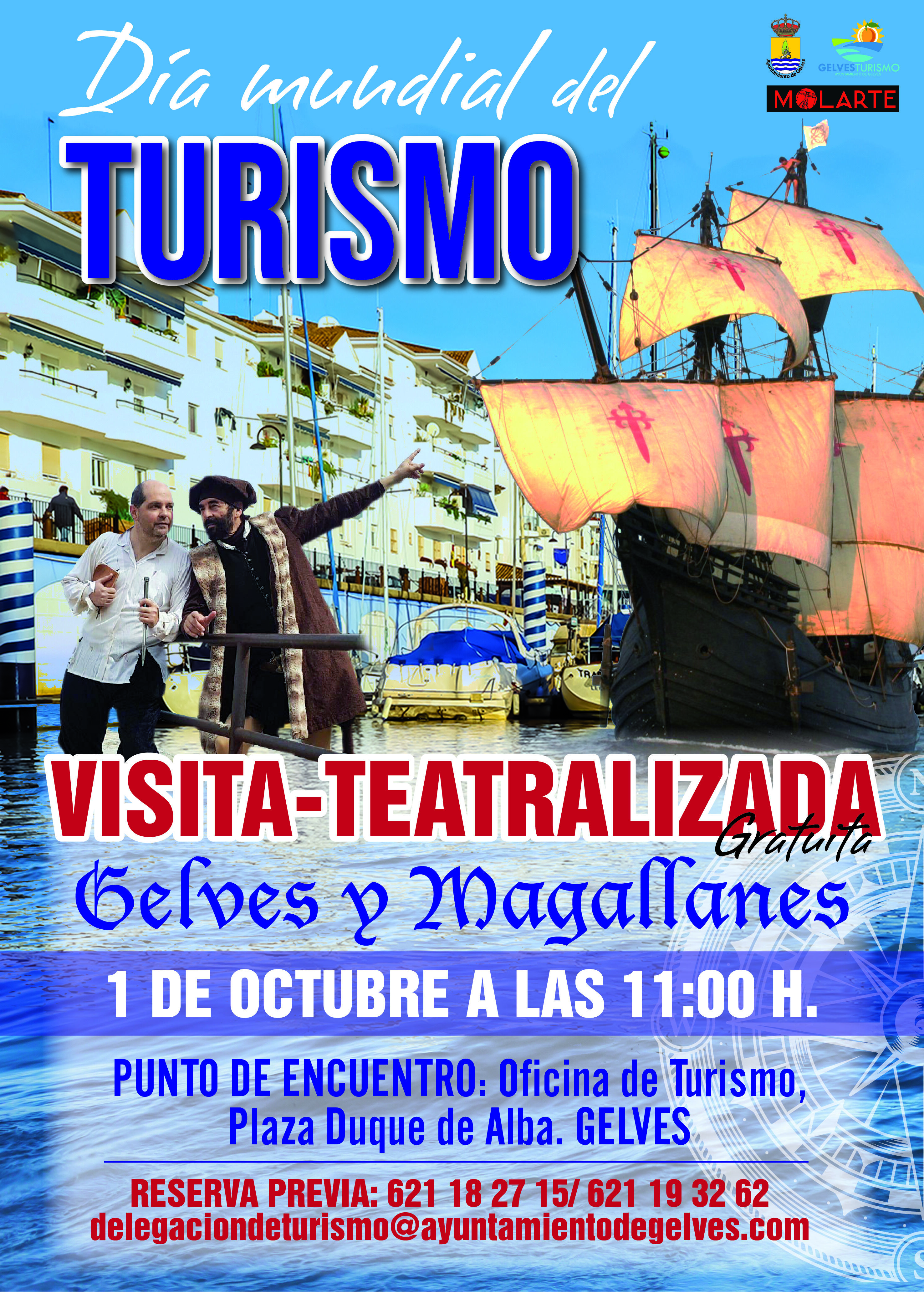 Organizada con motivo del Día Mundial del Turismo y para todos los públicos, partirá a las 11:00h desde la Oficina Municipal de Turismo. Aunque es gratuita, al tener plazas limitadas, es necesario inscribirse en la mencionada oficina (Tel.: 621182715-621193262- delegaciondeturismo@ayuntamientodegelves.com).