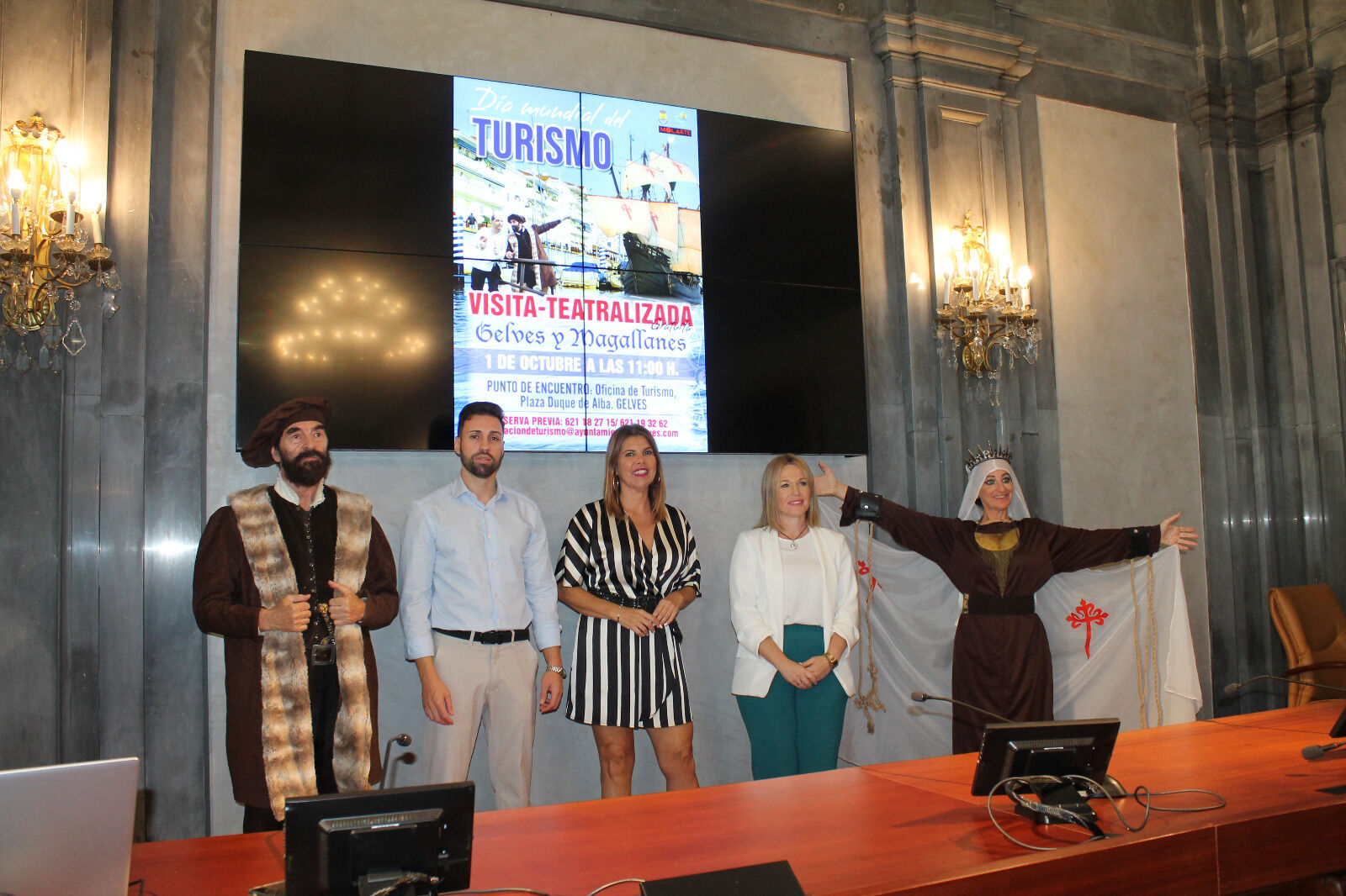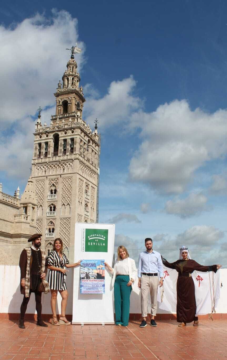 El Ayuntamiento de Gelves ha presentado esta mañana en la Casa de la Provincia la visita teatralizada “Gelves y Magallanes” organizada por la Delegación Municipal de Turismo para el próximo domingo 1 de octubre. La titular del área, Isabel García, ha estado acompañada por la delegada municipal de Eventos y Protocolo, Mariló González, y Manuel Molina, CEO de la empresa de gestión y difusión cultural, MOLARTE, encargada de desarrollo de la visita. También han asistido dos de los actores que participarán en la puesta en escena de la ruta, que se centrará en la relación entre el municipio y la gesta más importante de la Historia: la primera circunnavegación a la Tierra, iniciada por Fernando de Magallanes, y concluida por Juan Sebastián Elcano.