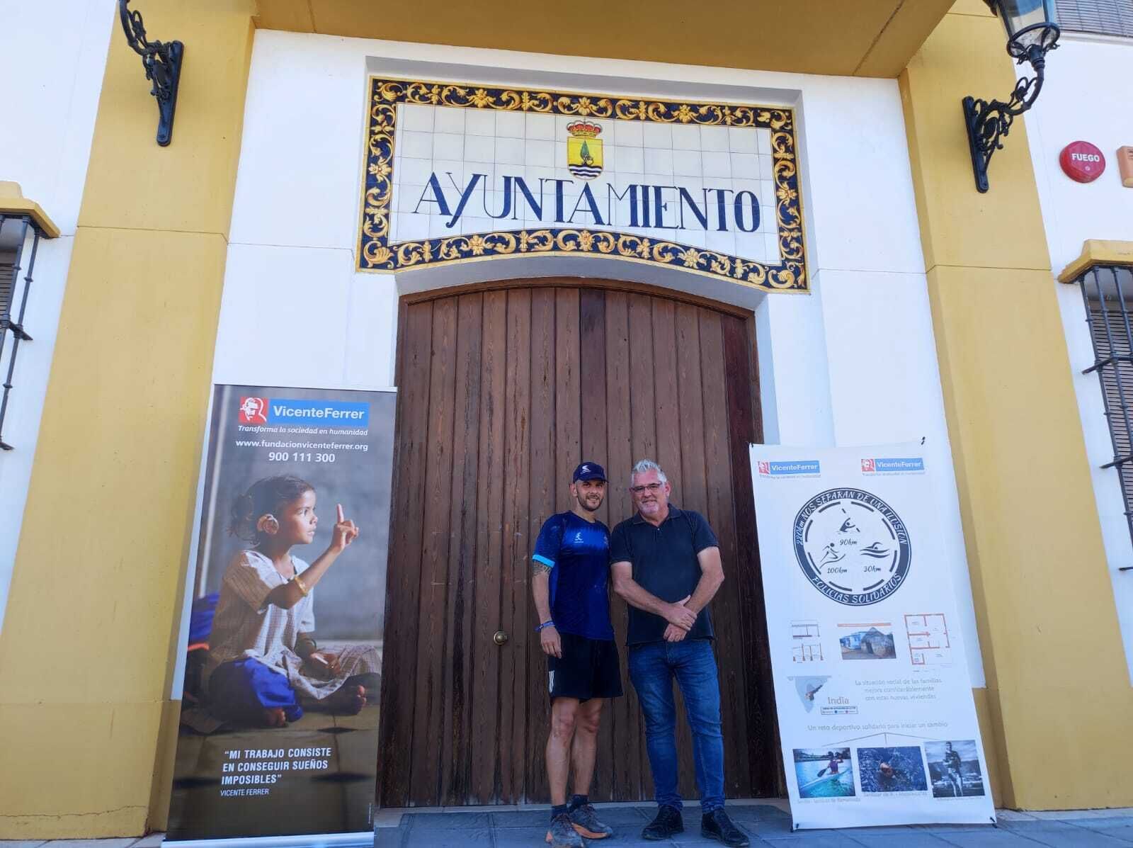 Rafael García Villa, en representación del equipo de gobierno municipal, les mostró su apoyo a las puertas del Ayuntamiento durante su ruta de 100 Km entre Matalascañas y Sevilla. Su objetivo la construcción de viviendas para familias vulnerables en la India.