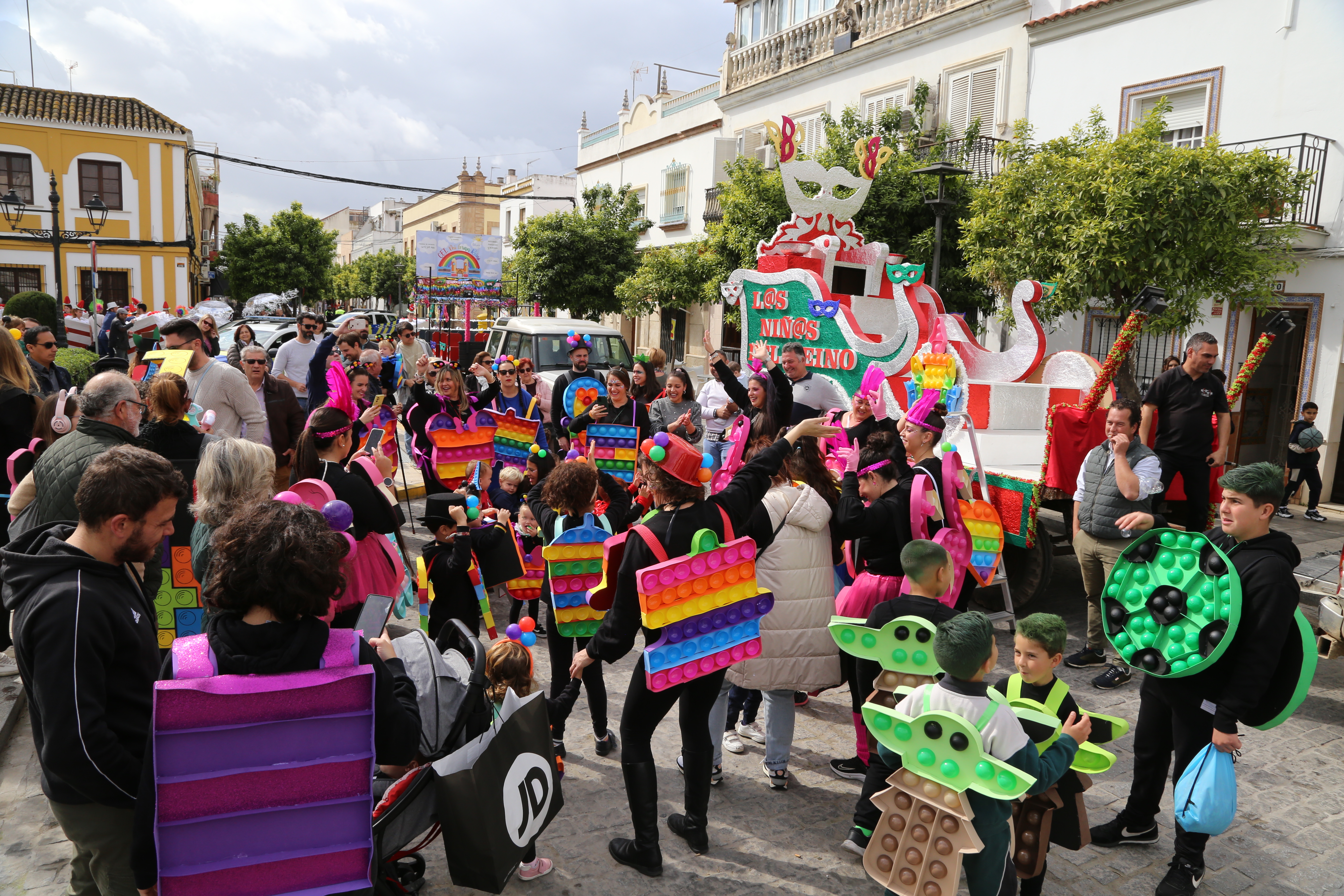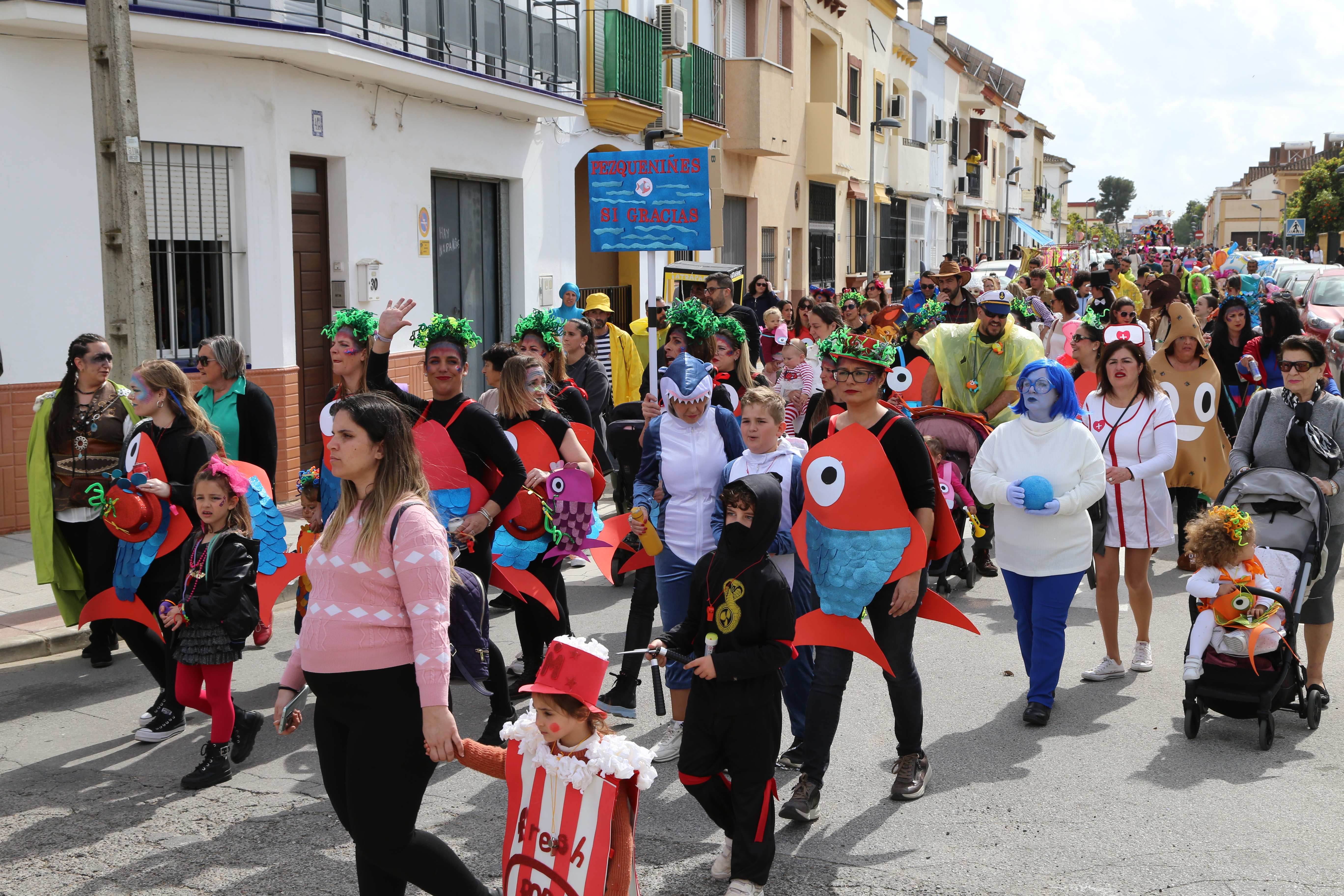 Poco después de esa hora dio comienzo el pasacalles con destino al parque de Andalucía, que recorrió las principales calles de la localidad acompañado por la charanga ”Los Pingüinos” contratada por el Ayuntamiento, además de otras propuestas musicales (charanga, dj, quiosco musical) que aportaron varios de los grupos participantes (CEI Duendecillos, CEI Mi gran Reino y Tuboscape respectivamente). Una vez en el mencionado parque municipal el público pudo disfrutar de la Fiesta con ambigú, niniferia infantil, juegos, castillo hinchable, etc. amenizada en todo momento por un DJ Animador, encargado de la entrega de premios del concurso de disfraces en todas sus modalidades.