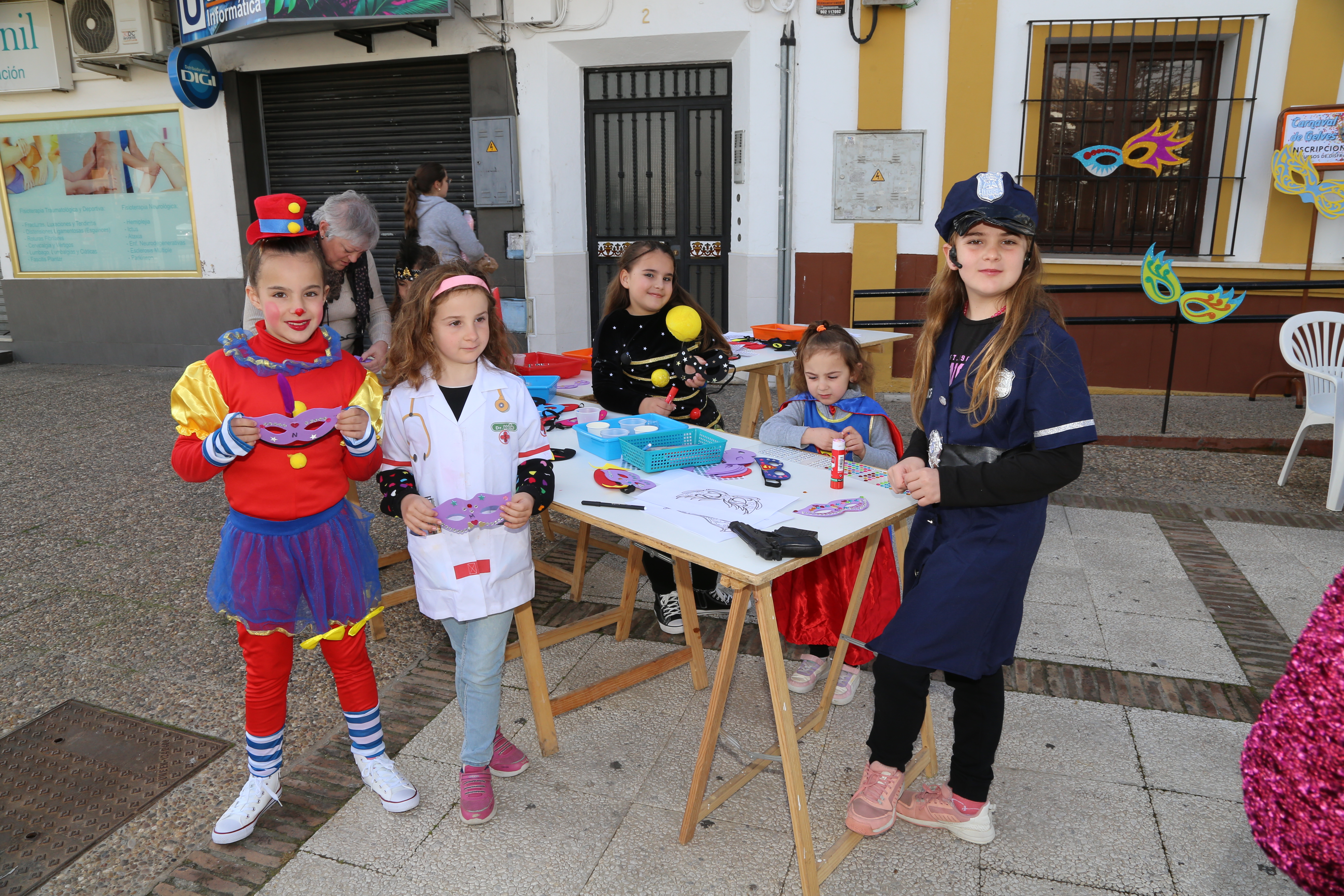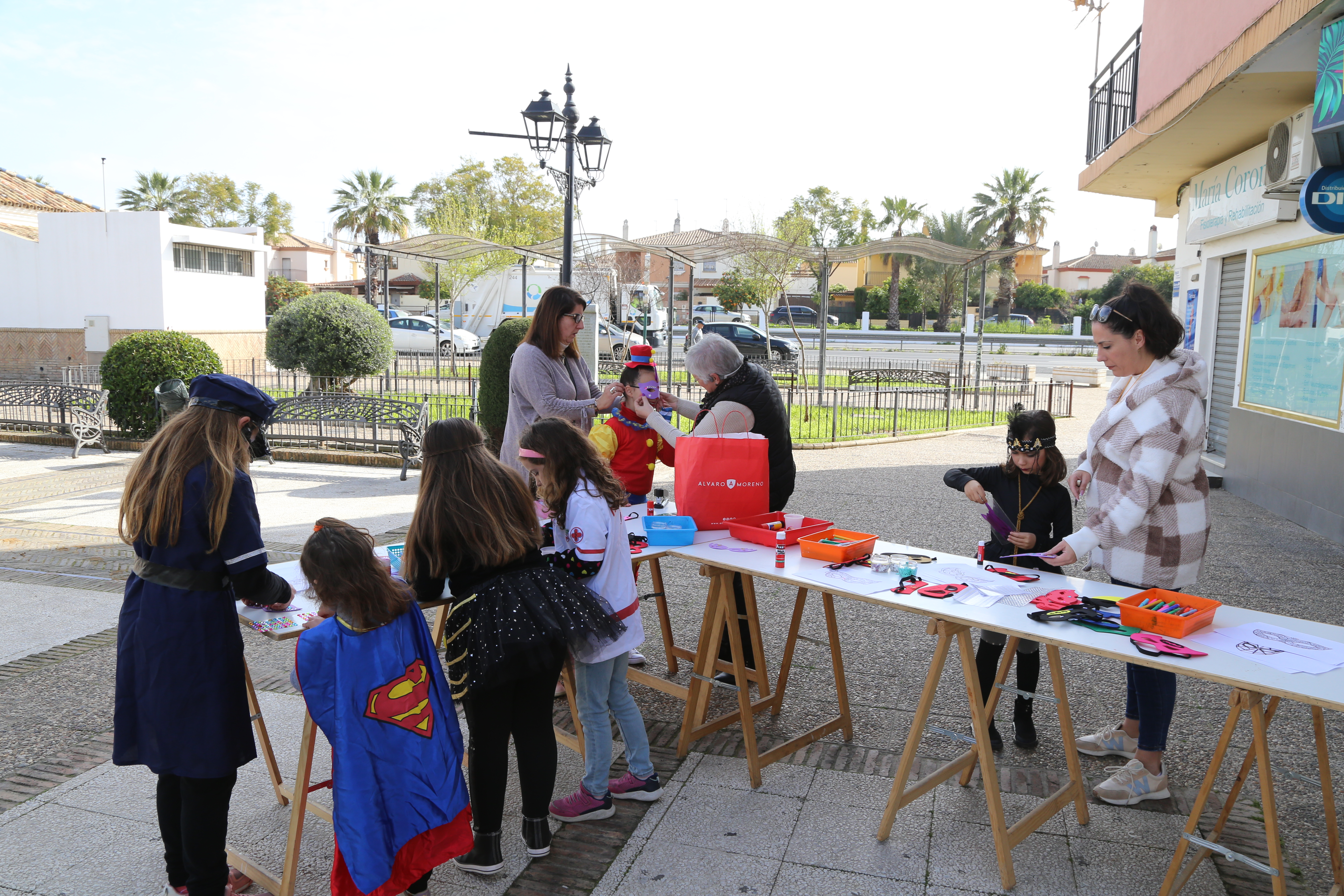La jornada comenzó hacia las 11:00h en la plaza Duque de Alba, donde la Delegación de Cultura había preparado unos talleres de manualidades, pensados sobre todo para los/as más pequeños/as. Allí mismo se realizaron las inscripciones al concurso de disfraces, entre las 11:30 y las 12:30h como dictaban las bases, llenándose la plaza de color, música y animación carnavalesca por momentos.