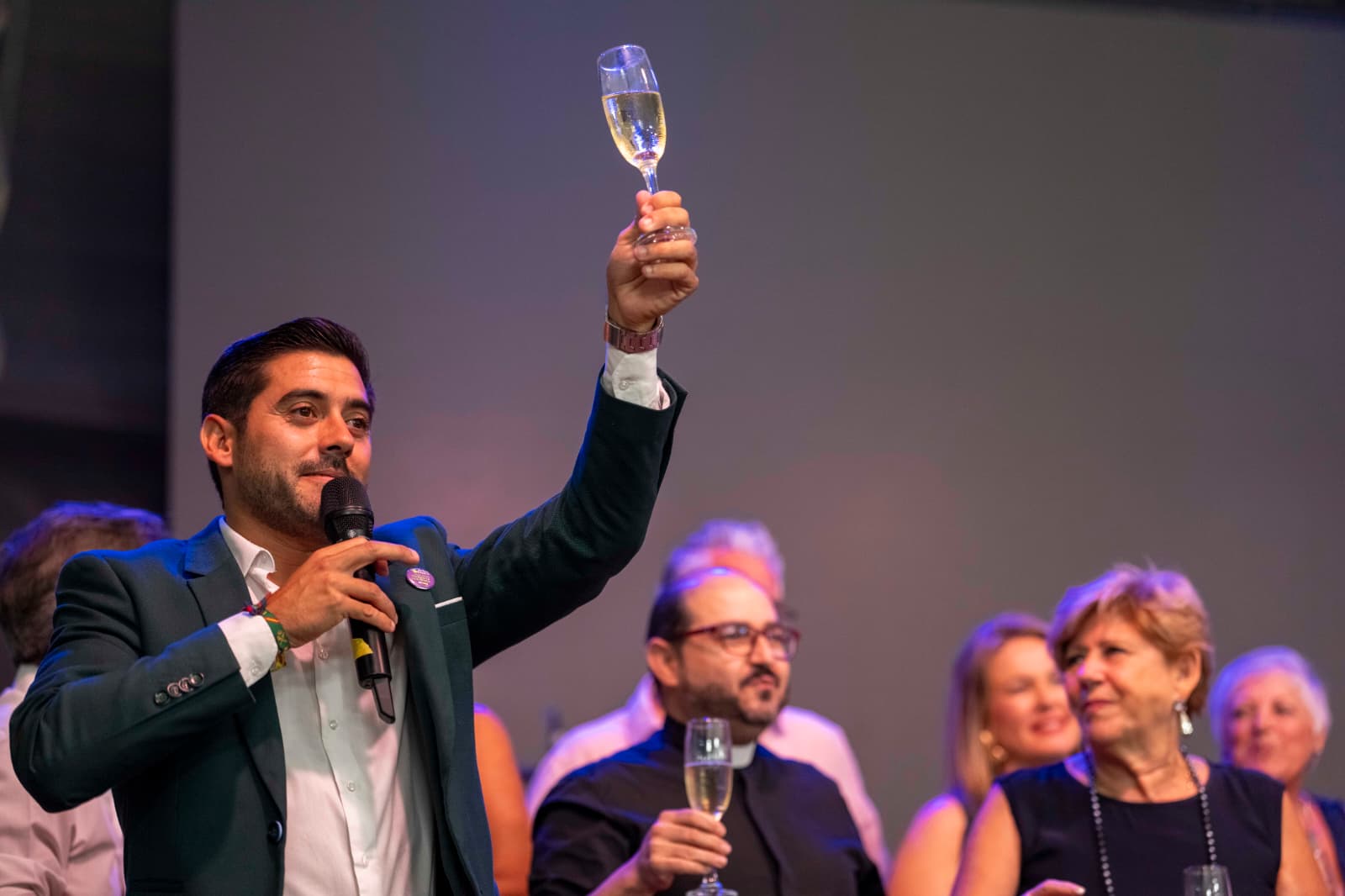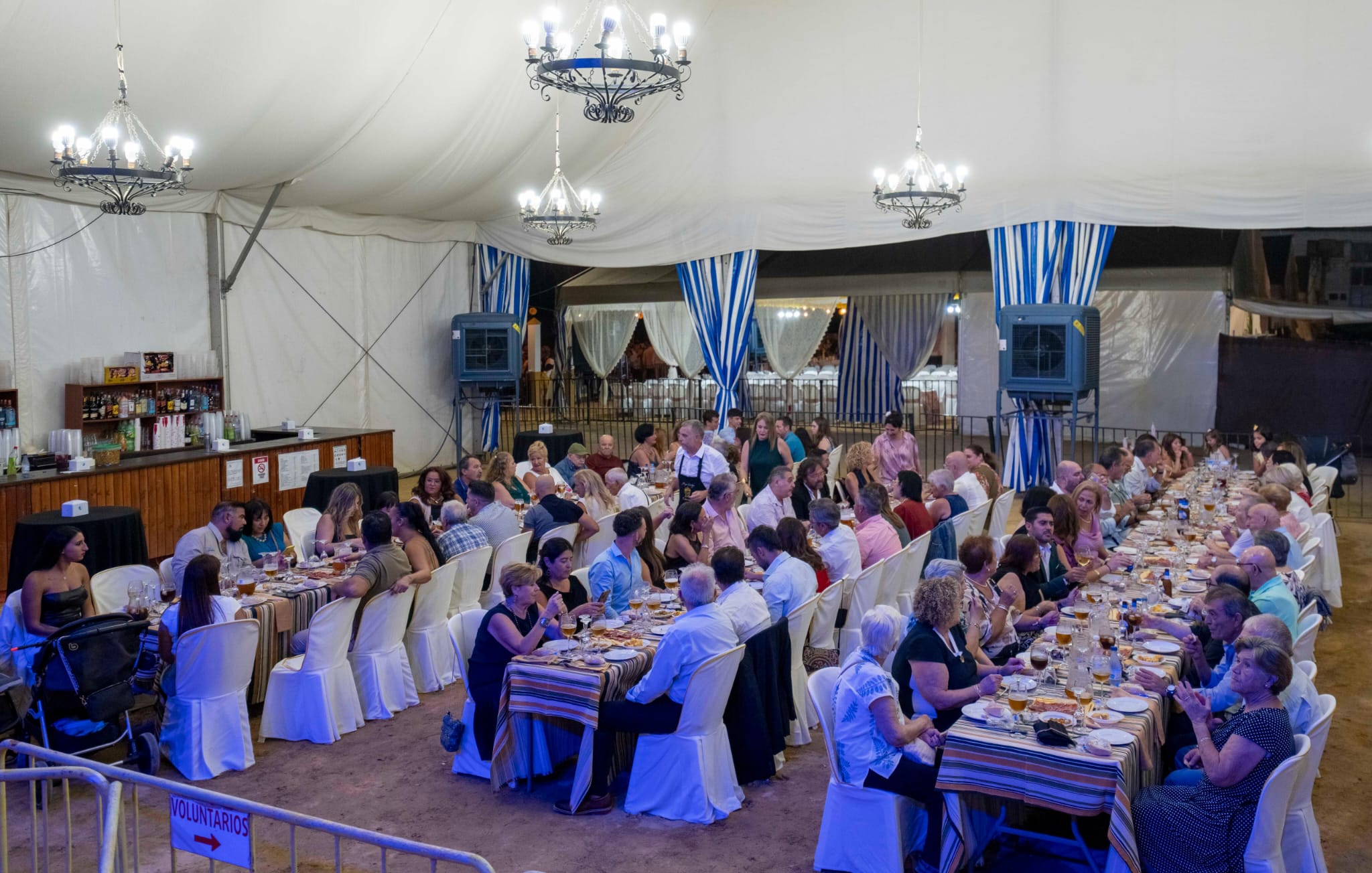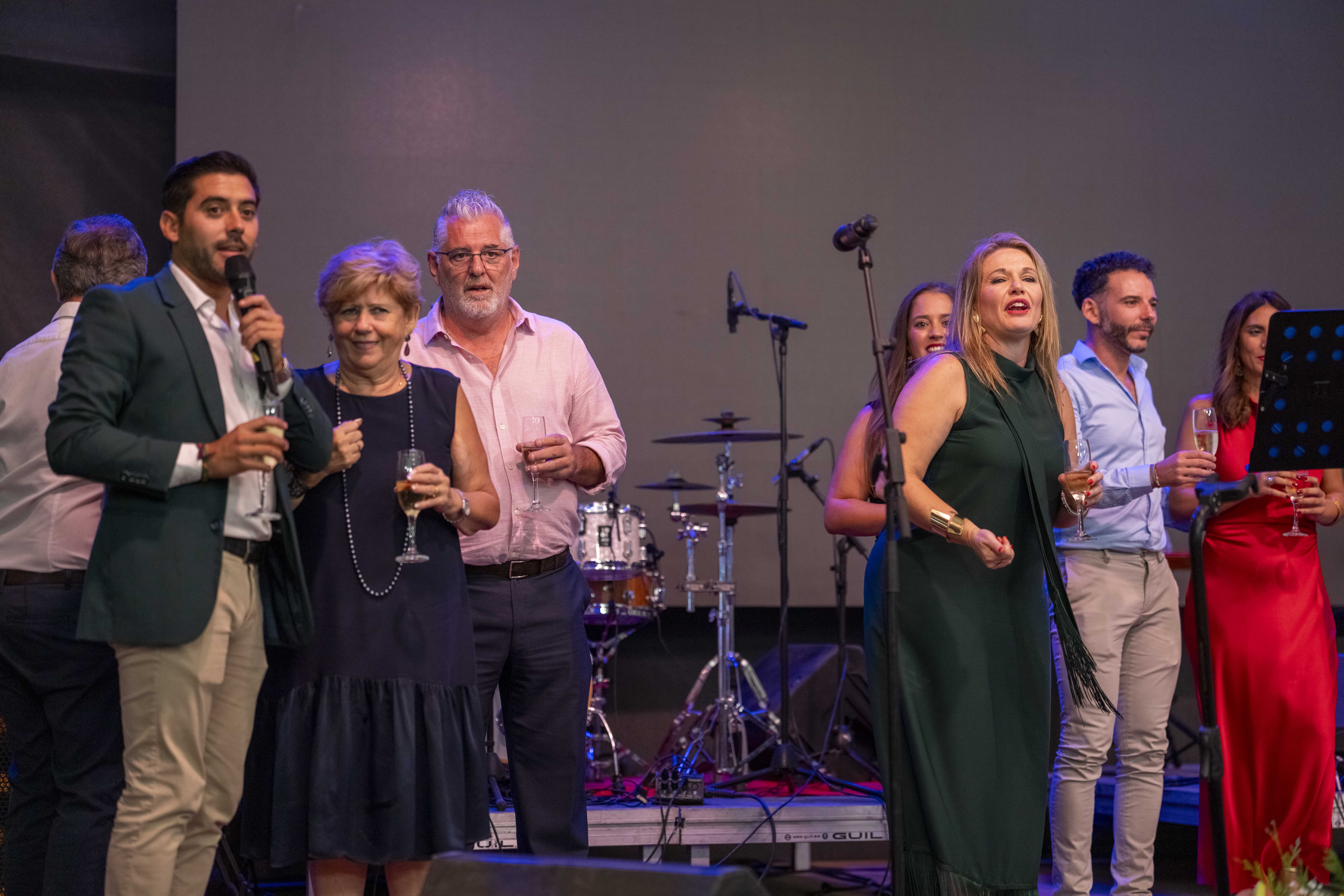Una vez de vuelta a la caseta municipal, la alcaldesa regresó al escenario junto a su equipo de gobierno y el párroco para brindar con cava con todas las personas asistentes, deseándoles unas fiestas felices y seguras. En su mensaje final, apeló a la solidaridad y a la paz, recordando que “es el amor el que mueve el mundo y puede acabar con las guerras”.