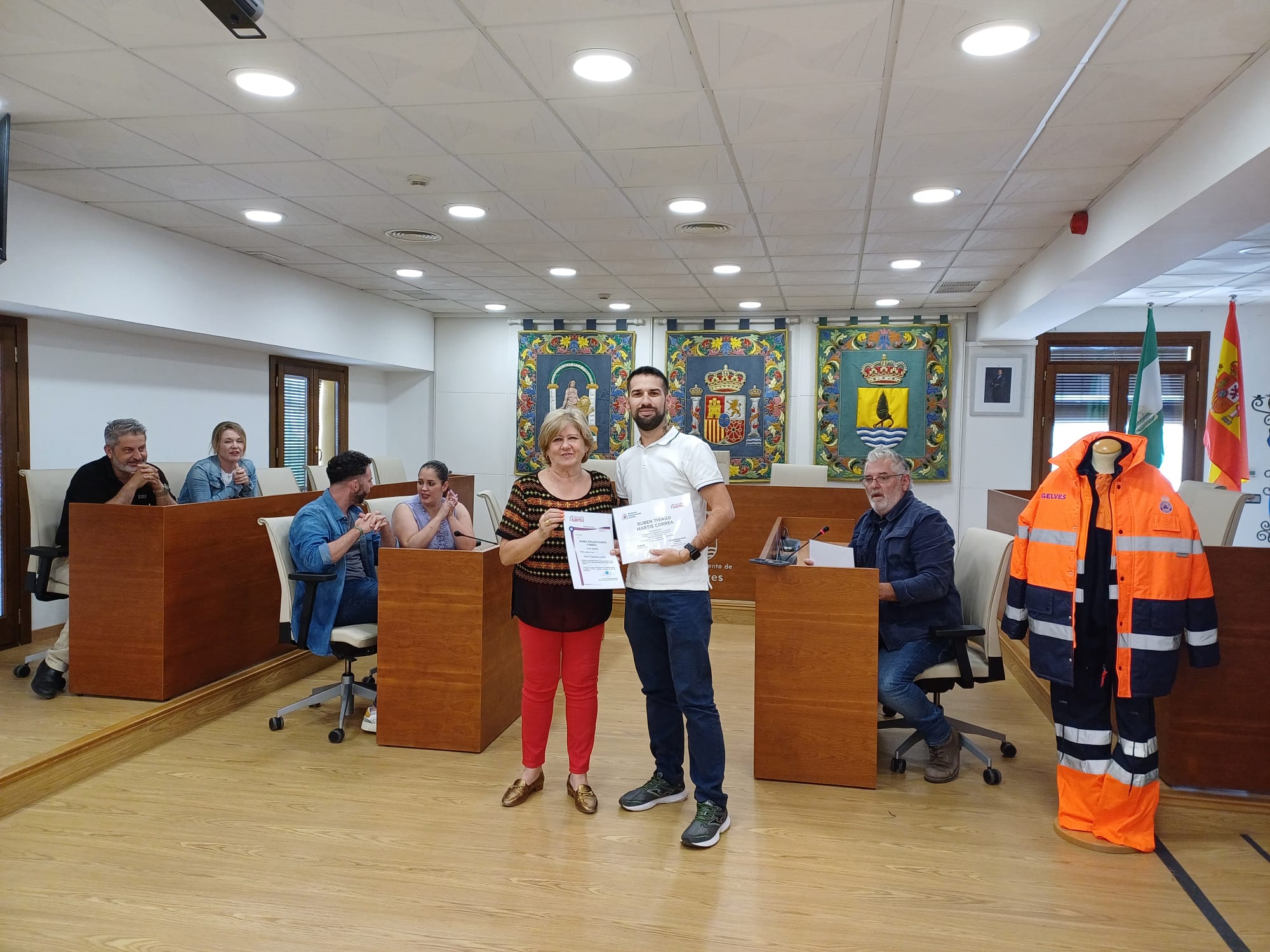 La alcaldesa les agradeció haber “apostado por esta aventura que va a significar mucho para el pueblo de Gelves, que tiene unas características muy especiales como su puerto y su cornisa”, y les aseguró que “el equipo de gobierno está trabajando para que cuenten con todo lo necesario para prestar un buen servicio a la comunidad” refiriéndose a una sede, uniformes, materiales, vehículo, etc. “pero todo ello respetando los procedimientos y tiempos que deben regir a una administración pública”. “Tenéis todo nuestro apoyo y estamos deseando que empecéis a colaborar con todas las delegaciones municipales que os necesiten en las diferentes actividades que desde el Ayuntamiento se organicen, siempre en coordinación con las fuerzas de seguridad”.
