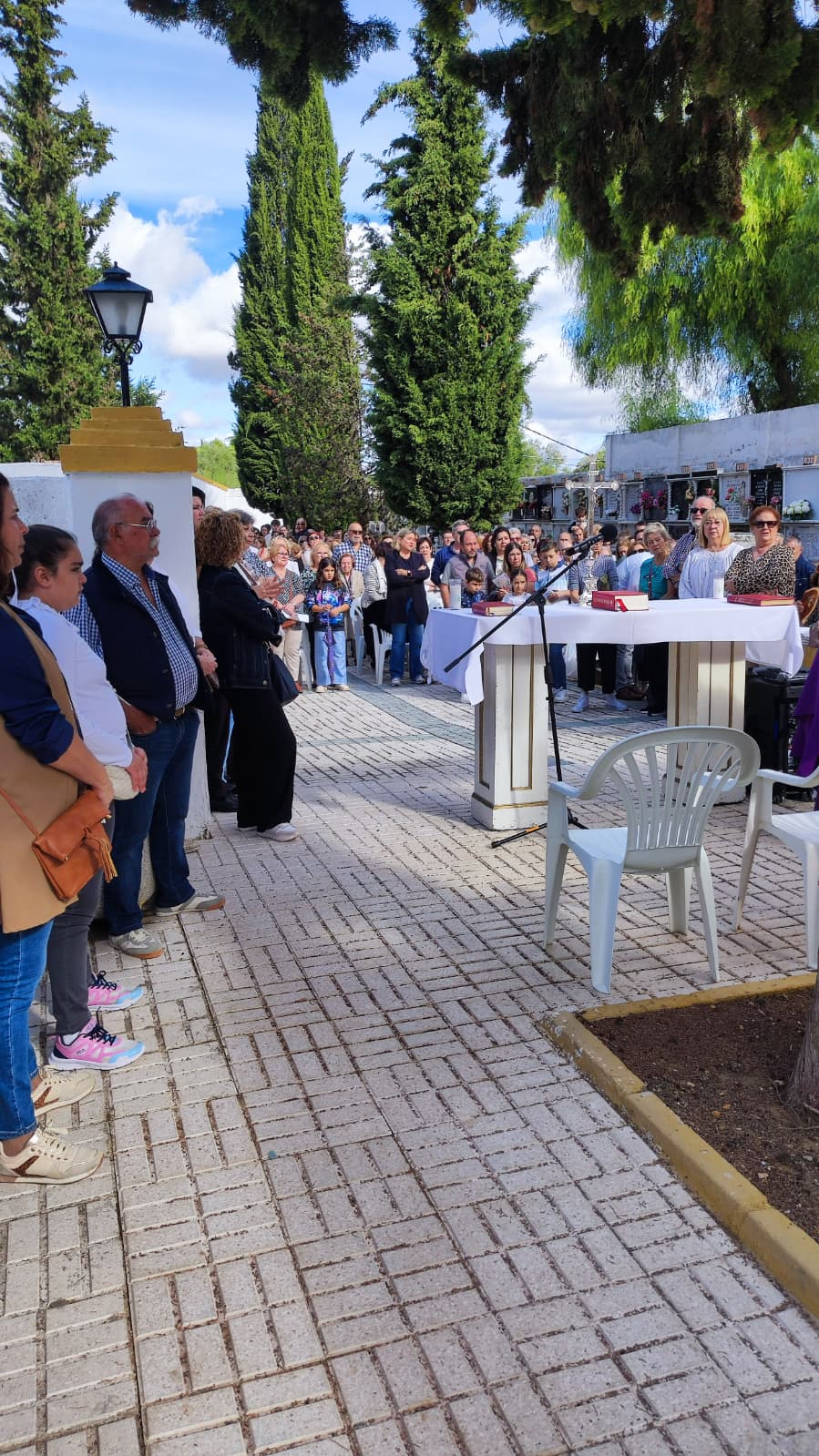 Como cada año, el Consistorio facilitó el traslado y la asistencia al Cementerio Municipal con un servicio especial de microbús, además de aportar medios técnicos y mobiliario para la celebración organizada por la Parroquia.