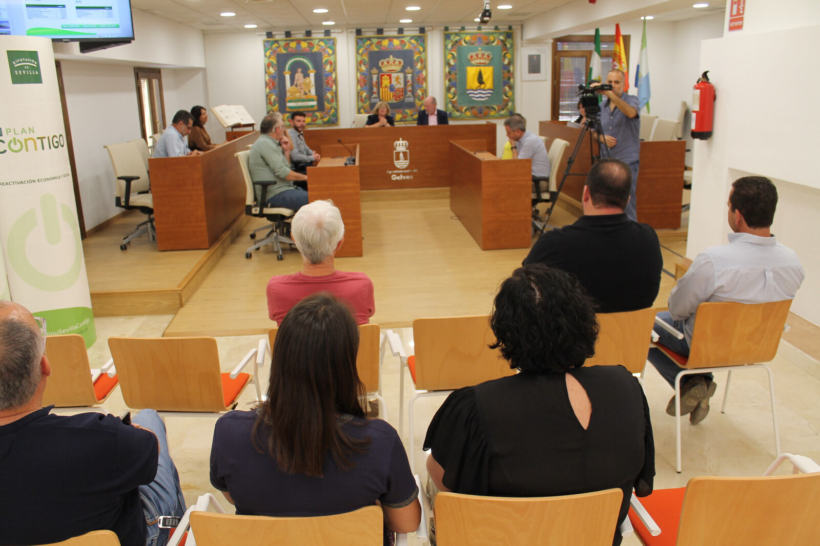 Villalobos ha compartido con la alcaldesa, su equipo de gobierno y algunos representantes vecinales y empresarios del municipio el desarrollo de estos planes de inversión, que traerán a Gelves casi 3 millones de euros.