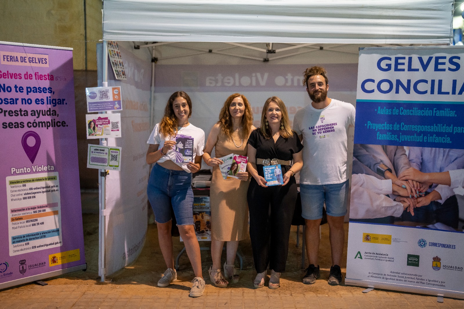 De nuevo este año la Feria de Gelves ha ofrecido una “Hora Libre de Ruido” (22:00 a 23:00 h.) en las atracciones de feria, en solidaridad con las personas que presentan diversidad funcional. También ha contado con un Punto Violeta, que esta edición también ha sido Punto Corresponsable. El primero para acoger a las posibles víctimas de violencia o agresión sexual. El segundo para ofrecer información y sensibilizar en materia de corresponsabilidad y cuidados para todos/as.