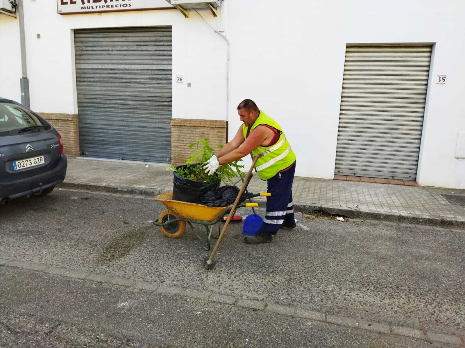 La Delegación de Servicios Públicos del Ayuntamiento de Gelves avanza en sus labores de repaso y puesta a punto de edificios municipales, la reparación de acerados que se encuentran en mal estado y el desbroce de calles y zonas verdes.