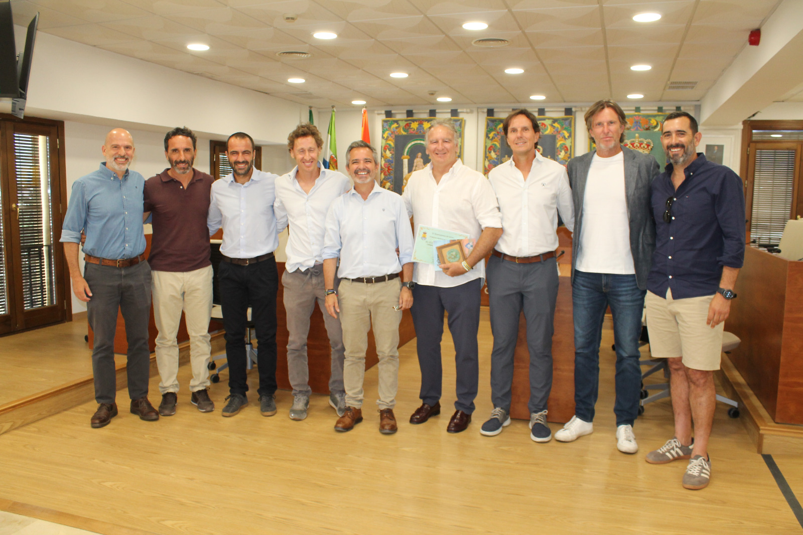 El equipo +45 del Club Bernier, que logró imponerse en la final estuvo formado por los capitanes Eloy Guerrero y Óscar Perona, y los jugadores Pedro Nieto, Jorge García, Marcos Martínez, Carlos Galán, Ángel Martín, Héctor Perona, Ernesto Fernández, Germán Pinna, Javier Villanueva, Valeriano Nogales, Juanma Morales, Antonio Escolar y Ernesto Vera. Tanto los capitanes como otros miembros del equipo allí presentes han agradecido al Ayuntamiento este gesto y compartido su deseo de seguir compitiendo y llevando el nombre de Gelves a lo más alto del deporte nacional “incluso europeo” en palabras del presidente del Club.