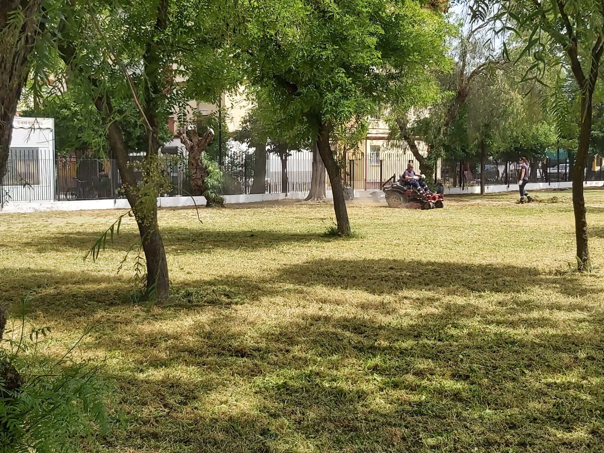 La Delegación de Obras y Servicios Públicos continúa en su empeño de adecentar y desbrozar las zonas verdes y espacios públicos del municipio retirando la maleza que ha crecido enérgicamente en los últimos meses de cara a la llegada del verano.