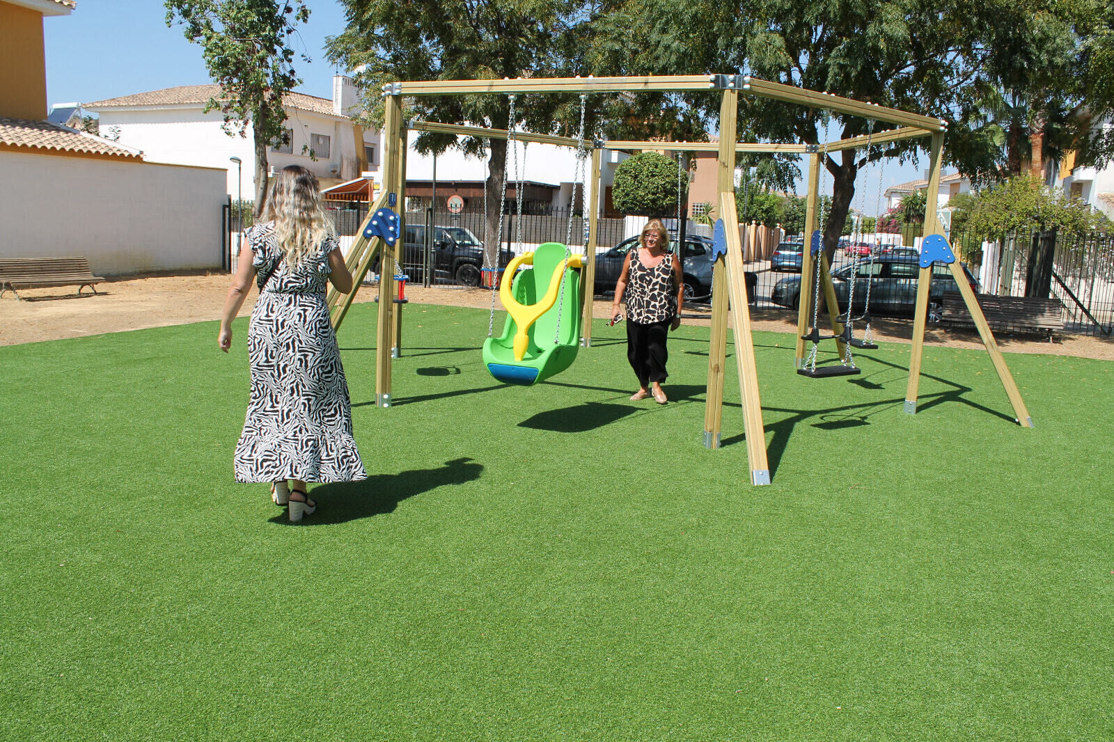 El emplazamiento ha contado con una mejora integral basada en la colocación de nuevos juegos infantiles adaptados a todas las edades y césped artificial.