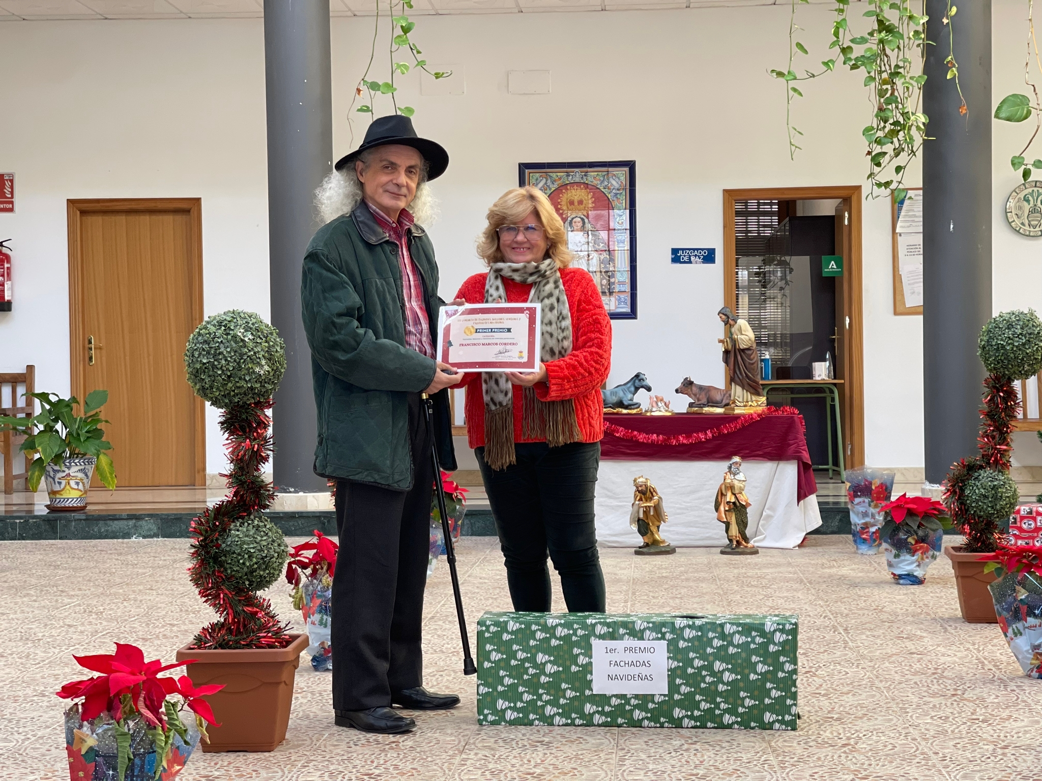 Alcaldesa y delegado de Fiestas y Eventos han hecho entrega de sus lotes de productos navideños a las personas ganadoras de esta edición: FRANCISCO MARCOS CORDERO (1º), LUIS MANUEL VELA AGUILAR (2º) y ALEXSANDRA KARINA (3º).