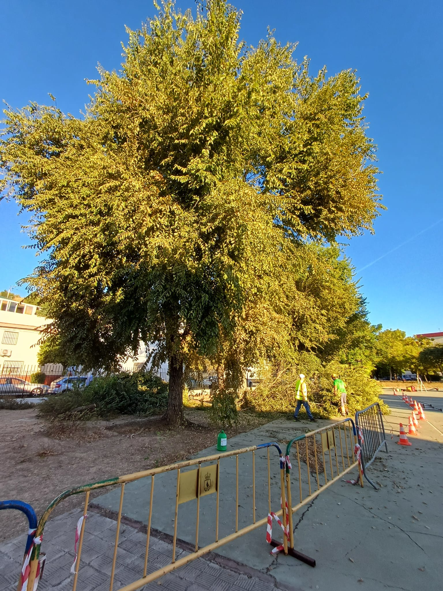 Esta mañana ha comenzado la retirada de la arboleda enferma existente en el CEIP Duques de Alba