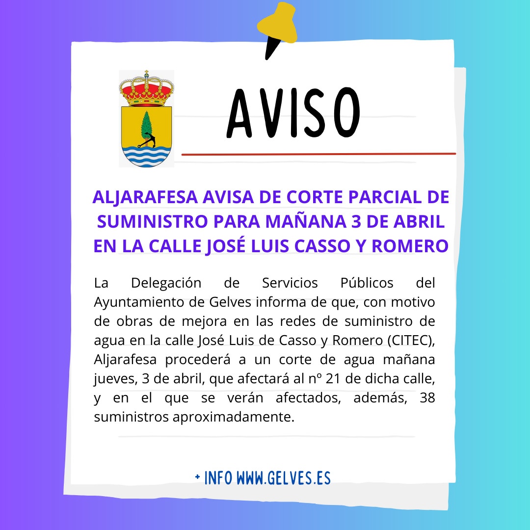Aljarafesa avisa de corte parcial de suministro para mañana 3 de abril en la calle José Luis Casso y Romero