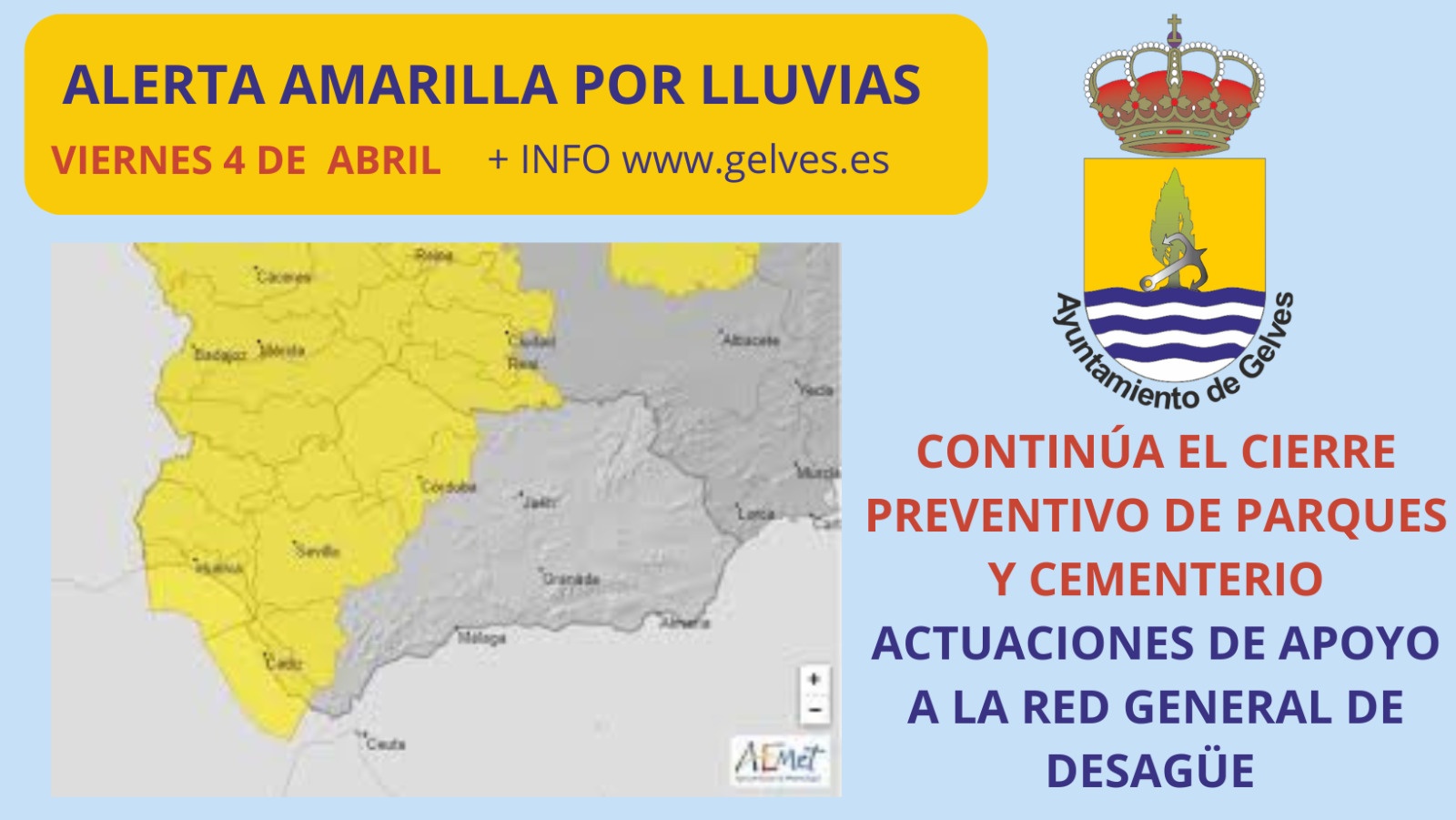 En principio permanecerán cerrados hasta nuevas indicaciones y en previsión de lluvia para estos días por parte de la Agencia Estatal de Meteorología (AEMET). Tanto la Policía Local como el personal municipal de servicios está revisando continuamente el municipio para detectar puntos de acumulación de agua, debido a momentos de fuertes precipitaciones. Además, se anima a la ciudadanía a dar aviso al Ayuntamiento si observan algún espacio que requiera intervención inmediata, llamando al 95 576 00 00.