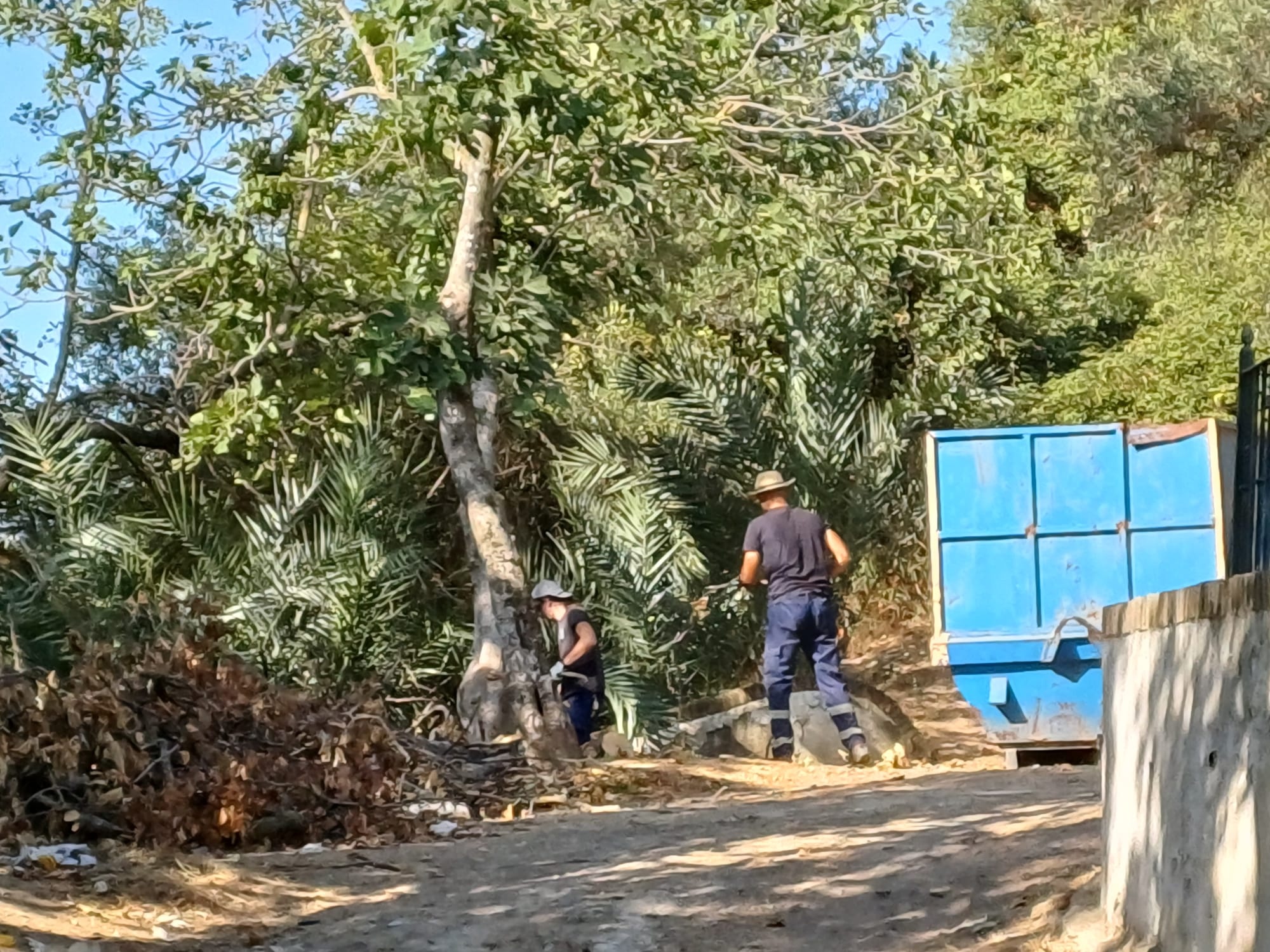 Operarios municipales están retirando los restos de la última limpieza de maleza realizada en los diferentes caminos y explanadas con los que cuenta este parque municipal próximo a la urbanización Maestranza.