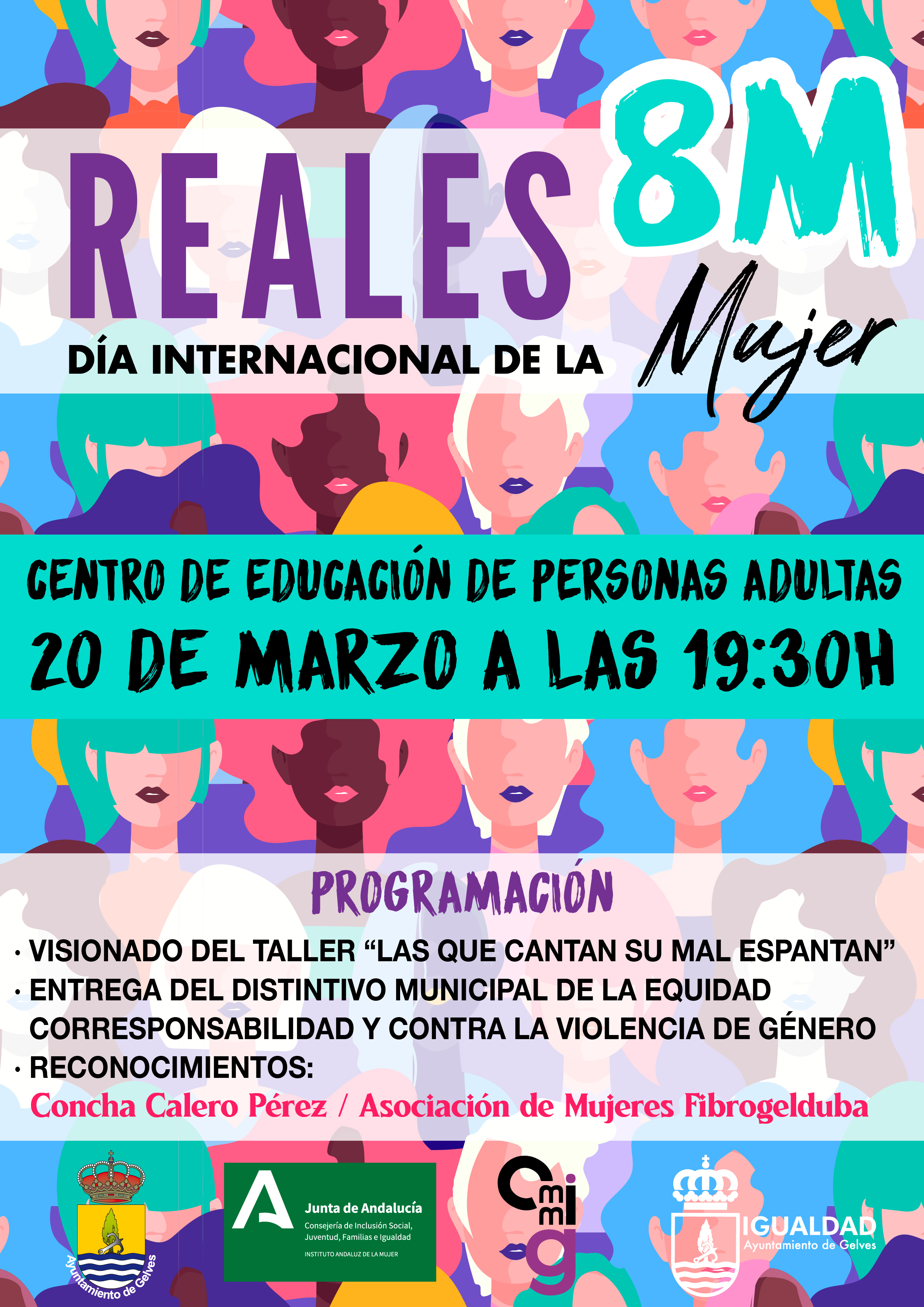 Bajo el lema de "Mujeres Reales", este acto forma parte del programa de actividades desarrollado durante los meses de marzo y abril organizados por el Ayuntamiento, el CMIM y los centros educativos de la localidad. Incluirá visionado del taller “Las que cantan su mal espantan”, entrega de dos Distintivos Municipales de la Equidad, Corresponsabilidad y contra la violencia de género, y reconocimientos a personas y entidades.