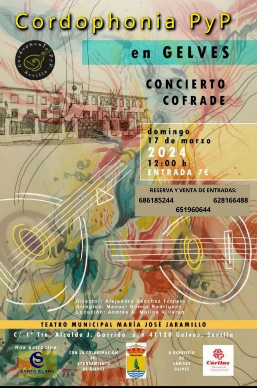 Organizado por Cáritas Parroquiales, en colaboración con la Delegación Municipal de Cultura, correrá a cargo de la orquesta de pulso y púa Cordophonía P&P. La Hdad. de Gracia ofrecerá una consumición gratuita con la entrada, y ha organizado un almuerzo cofrade en su Casa-Hermandad para completar una jornada de convivencia cuaresmal. Reserva de entradas y venta tanto al concierto como al almuerzo en Cáritas. Tel.: 686185244-628166488- 651960644.