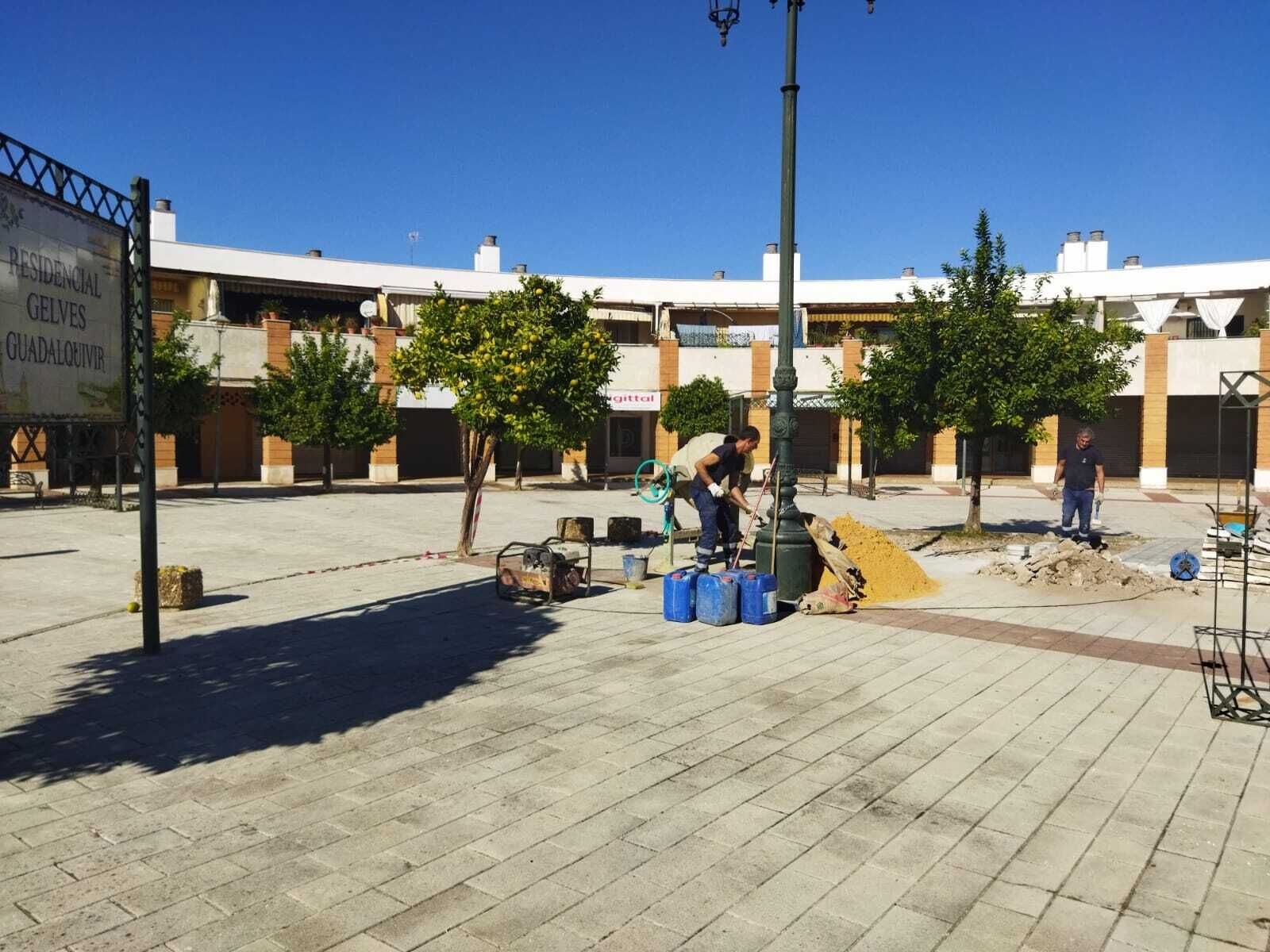 Situada en la urbanización "Gelves Guadalquivir", el Ayuntamiento está reparando zonas de pavimento deteriorado y mejorando la base, además de aprovechar para renovar las infraestructuras de la red de saneamiento en colaboración con Aljarafesa.