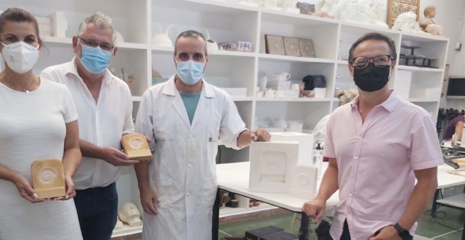 Responsables de las delegaciones de Fiestas, Turismo, Comercio, Desarrollo Local ya han recogido los premios elaborados por la Escuela de Artesanos de Gelves, que se entregarán a la persona y establecimiento ganador según las dos categorías establecidas en las bases.